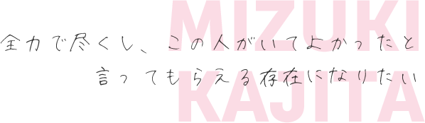 全力でお客様のために尽くし、この人がいて良かったと言ってもらえる存在になりたいです。
